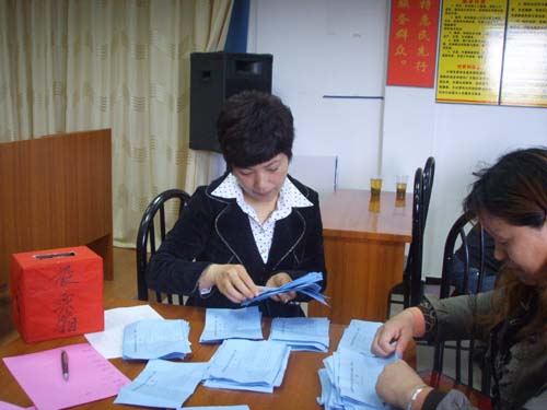 4月20日早上5点半,根据19日下午会议的要求,全体工作人员全部到位,全村共分23个流动票箱,到各组选民中进行投票选举。上午9点整,投票结束,经过全体工作人员的统计,总监票人报告了得票结果,由村党总支书记蒋富根向全体工作人员宣布了村委会预选候选人的得票结果,并根据得票情况确定了正式候选人,分别是:主任正式候选人盛玉华、盛永章,副主任正式候选人陈美红、张培华、应松堂、卢林。以上正式候选人将在4月26日进行正式选举。