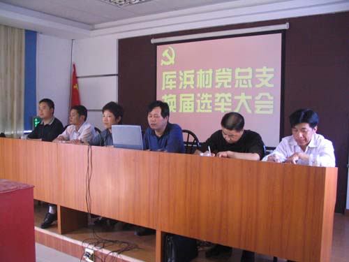 村党总支书记蒋富根在会上总结了村党总支三年来的工作,党总支副书记盛永章宣读了《厍浜村党总支选举办法》,镇村级换届选举指导组顾玉根介绍了党总支候选人的基本情况。顾玉根说;经过公开推选和资格审查后,有8名党员进入信任度测评和考察,最后,经镇党委讨论确定蒋富根、盛玉华、盛永章、周建忠、姚吉平五人为候选人。经过到会党员的无记名投票,选举蒋富根、盛玉华、盛永章、周建忠四人为新一届党总支委员会委员,蒋富根当选为村党总支书记,盛玉华、盛永章当选为村党总支副书记。