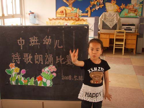 5月14日,中班的小朋友欢聚在一起,开展了诗歌朗诵比赛。这个比赛是在全体小朋友参与的情况下,选出12名选手进入决赛的。开展这次活动,既培养幼儿的有意识记能力,又发展幼儿的口语表达能力,从总体来看,多数幼儿语言表达能力好,口齿清楚,如同竹筒倒水般非常流利,还能根据诗歌的内容配上相应的,表演的非常自然,体现了我园的教育特色。