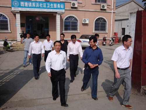 在村卫生室,何炳荣书记向医务人员亲切询问了卫生室的运作情况,并查看了卫生室内的环境布置。随后,他来到我村村文化活动中心,了解老年活动室、影视厅的建设情况。何炳荣一行还徒步来到了我村建设中的联民新区,向我村党总支书记蒋富根、村主任盛玉华了解小区建设情况,共同探讨新农村建设工作。
