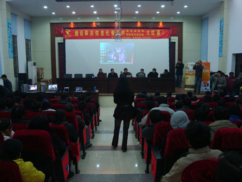 12月6日晚,县电信局与嘉善创威电脑联合在我村影视厅开展了一次电脑知识培训活动。县电信局、联想公司华东地区相关领导也参加了会议。