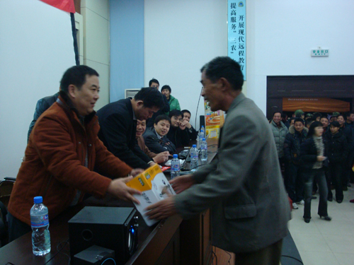 在会场,记者看到数款电脑摆放在影视厅台前,有台式电脑,也有笔记本电脑,他们选择展示的几款电脑价格在一般村民能接受的范围内。从县电信局中山支局局长沈南虹处了解到,我村已被市政府列入2008年全市首批20个信息化普及村试点之一,这次开展电脑知识培训就是为了加快我村的信息化进程,实现全村宽带覆盖率50%的目标,村民在12月30日前按装宽带可享受450元的优惠,购买联想电脑可享受500至600元的优惠。 培训由联想公司华东地区总监张文宇主讲,他主要讲了如何使用电脑,在电脑上找到自己所需的信息等知识,并开展互动活动,村民踊跃参与。此次培训活动还设置了抽奖环节,激发了村民的参与热情,嘉善创威电脑公司总经理叶坚在会上讲了村民购置电脑后保证上门优质服务承诺。