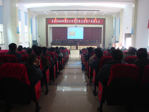 1月17日下午,我村召开民主听证会暨五星级户表彰大会,全体党员、组长、村民代表、企业负责人以及镇联村干部高雪娟等参加会议。会议主要听取了2008年村两委工作报告、经济合作社财务工作报告、村务公开监督小组报告,村两委班子成员、大学生村官以及县镇人大代表的述职报告,会议还表决通过了2个决议。一批在2008年中为厍浜村作出贡献的先进单位、先进个人以及五星级户在会上受到了表彰奖励。