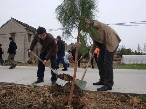 在植树节临近之际,县机关单位联挂在我镇的干部、镇机关干部、志愿者以及我村民兵连、妇代会等40多人到我村南片黄家浜路段开展植树活动。经过一个多小时的劳动,共种植松树160多株,为我村增添了许多绿色,也为我村创建省级绿化示范村添砖加瓦。