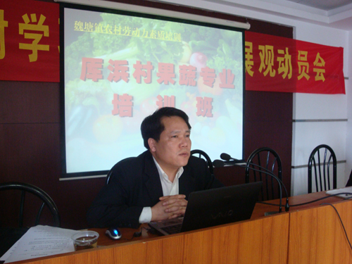 结合学习实践科学发展观活动和“强村计划”,为培养“有文化、懂技术、会经营”的新型农民,发展高产、优质、高效农业。4月14日下午,村党总支邀请县农经局法规科科长陆富明和农广堆肥站站长徐锡亮来我村讲课。陆富明主要就种子法等进行了讲解,徐锡亮就农业基础、农业法律知识2张考卷进行了讲解和分析。许多农户表示参加此次培训班收获不少。