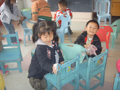五一前夕,我园开展了一次“我是快乐的劳动者”活动,小朋友们在活动中个个表现活跃,劳动起来像模像样的,令老师感到很欣慰。只见擦桌子的擦桌子,清理小箱子的清理小箱子,其劳动场面真是热闹非凡!通过这次活动,不仅促进了幼儿主动发展创造的机会,同时显示了孩子们的劳动潜力,并且知道劳动虽然辛苦,但却是一件很光荣的事情,起到了良好的教育作用。
