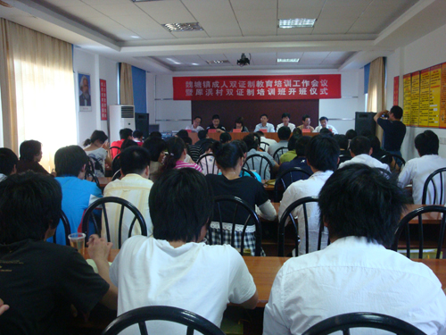 5月11日下午,魏塘镇成人双证制教育培训工作会议在我村召开,这也是我村双证制培训班开班仪式。魏塘镇副镇长俞美琪、县教育局副局长吴重秋、魏塘镇成校校长黄金华等领导到场作重要讲话,各村教育负责人参加会议。