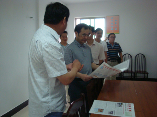 在厍浜村电子阅览室,冯志礼还兴致勃勃地阅读了《厍浜简报》。冯志礼对厍浜村的纪检监察工作表示肯定,并对我村今后如何继续办好村级简报和村级网站提出了要求,同时他也充分肯定了村级简报、村网站在村务公开中的作用。