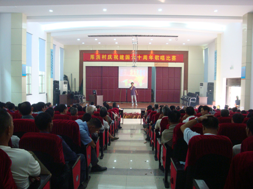 9月26日下午,在我村影视厅开展庆祝建国六十周年歌唱比赛,活动的主题是“祖国,我为您歌唱!”。罗星街道团委副书记王静、马骏越担任评委,党员杨化迁以一曲《少年壮志不言愁》夺得桂冠。此次活动共有11名选手参加,他们都是我村的党员、组长、妇女联络员和团员。比赛结束后,村党总支书记周建中就节假日期间的安全问题进行了强调。
