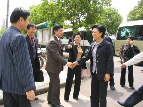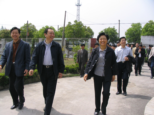 4月19日上午,浙江省委副书记乔传秀在嘉兴市委书记黄坤明及嘉善县委书记高玲慧等领导的陪同下来到厍浜村调研先进性教育情况。