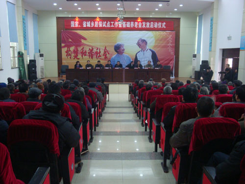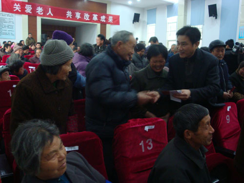 1月4日上午,我县首批基础养老金在我村正式发放。这标志着我县在实现城乡居民养老保险全覆盖的道路上迈出了坚实的一步。县领导冯伟、何全根、奚掌福、姚定栋等参加发放仪式。