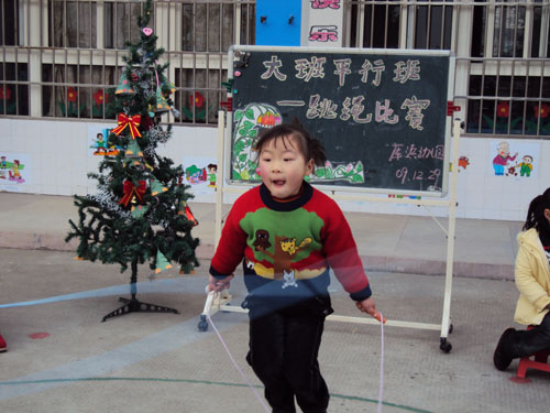 这次跳绳比赛,锻炼了幼儿的毅力,强壮了幼儿的体魄,提高了幼儿参加比赛的积极性,增进了幼儿之间团结的能力,让幼儿体会了集体的荣誉,更重要的是幼儿在运动中体会到了快乐。