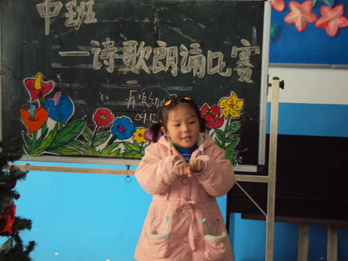 此次比赛的内容丰富,形式多样,中班的幼儿是以浅易懂的诗歌为主,如《手指摇》、《小水滴》、《大树和小鸟》,特别是以《调皮的太阳》我班的盛泽坤小朋友用流利的声音朗诵流畅,而徐小萌的《手指摇》只是以活泼大胆,天真可爱的童声伴着整场活动,经过评委老师的打分,评出盛泽坤等二名一等奖,王欣雨等六名二等奖,陈子豪等六名三等奖。