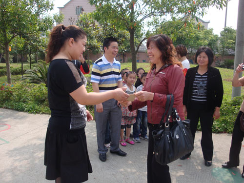 上午,鑫锋村妇代会主任杨筱娟、倪杏琴来到我村幼儿园,为小朋友们送上了节日的慰问金。