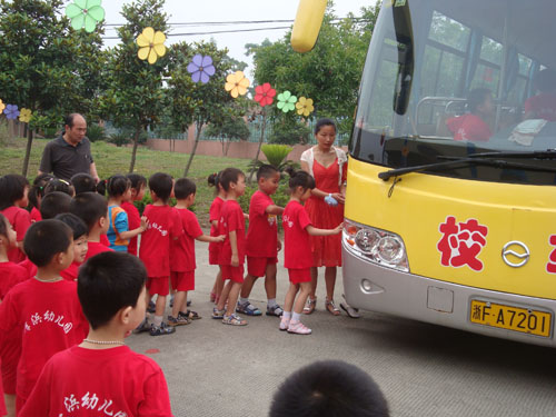 6月22日上午,厍浜幼儿园的孩子们穿着整齐的园服,期待着泗洲小学的校车快快的到来,她们的脸上洋溢着快乐和向往,在泗洲小学盛校长的带领下,两辆大巴车缓缓的驶进园中,孩子们排着整齐的队伍上了车,一到小学,孩子们跟着盛校长参观了校园,看着设计超强,设施一流、智能化系统一步到位的校园,孩子们的幸福感油然而生,能到这么漂亮的学校读书,是件多么幸福的事情呀!