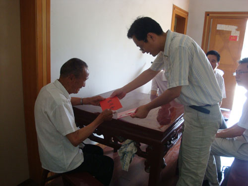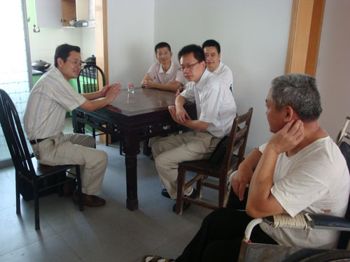丁峰彪首先来到了我村老党员、退职老干部丁引观家中,丁引观1931年12月出生,1980年7月入党,他和儿子丁富根都当选过联星村的支部书记,为联星的发展作出过贡献。如今80岁高龄的他已是白发丛生的老人,面对组织部党员干部的亲切慰问,他的激动之情溢于言表。我村党员张金华在1993年发生工伤事故后致残,至今一直坐在轮椅上,但是有关组织部门和我村党总支经常上门走访、慰问,让他感受到了党组织的温暖。