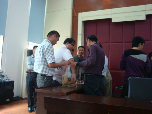 经广泛听取群众意见后,对河浜、鱼塘宅基不列入本次抽签范围。此次抽签共有宅基地大中套108只,小套 24 只。由于8月25日大中套已经完成顺序号抽签,故此次大中套只需抽取宅基地号。在工作人员上台开始检查票箱、领取筹子并作清点,将宅地基号筹子放入信封后,抽签正式开始。大家按照抽签号有秩序地上台抽签。