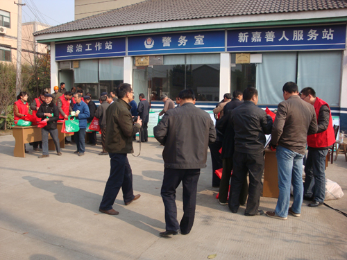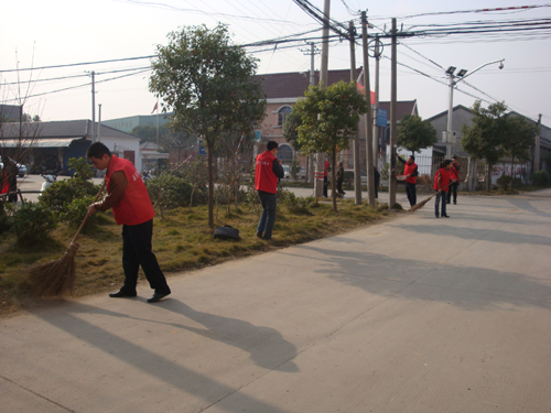 11月25日下午,县党员志愿者送服务到我村。在村综治站门口,10多名来自不同单位的党员宣传低碳环保知识,派发环保袋。在村主干道上,还有几名党员志愿者在清扫道路,清除乱张贴。他们都身穿红马甲、头戴小红帽,向过往的行人展示着党员志愿者的光辉形象。