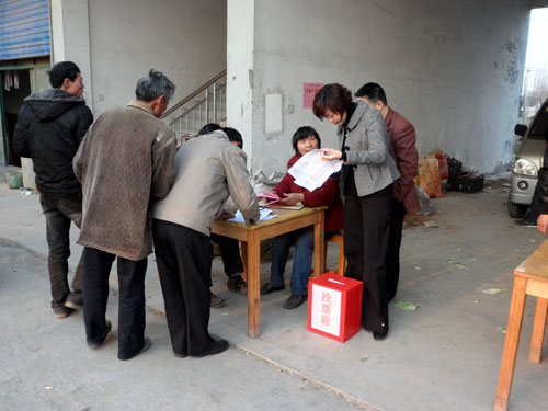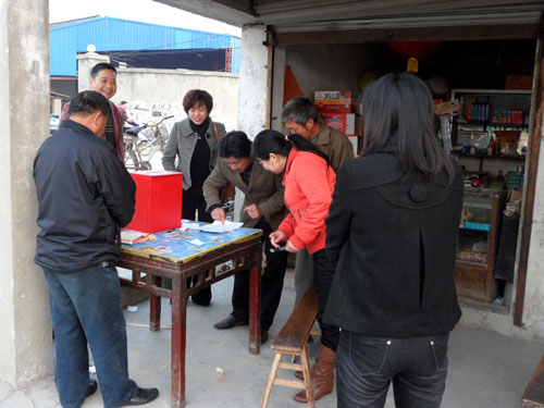 当天早上5点30分,各站点派出2名同志到村领取选票。6点,各站点开始投票。此次投票时间规定为上午6点至10点。街道指导组组长王学华、副组长曹建国等领导在选举前到个站点视察选举工作进展情况。上午10点,各站点选举工作完毕。本村共有选民2759名,参加投票选举的选民(含委托投票)2759名。共发出主任、副主任选票2759张,收回2749张,其中有效票2745张。本次换届选举应选主任1名,副主任3名,实行自荐直选。经过监计票人汇总后,盛玉华以2250票当选为村委会主任,杨化迁、张培华、陈铁君分别以2312票、2159票和1778票当选为村委会副主任。