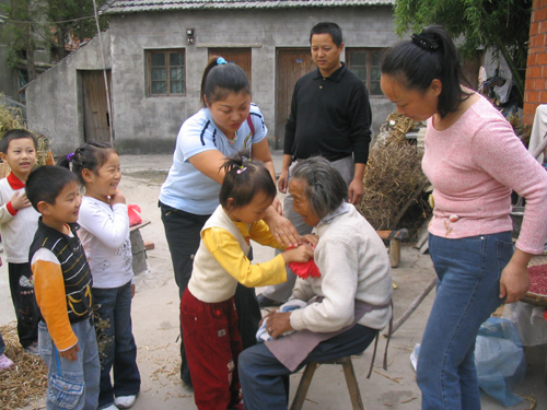 为了弘扬爱老敬老的新风尚,提高小朋友“尊老敬老”的意识,幼儿园老师带领了一支由六个小朋友组成的表演小分队走访了厍浜村的三位老人。小朋友们亲手为老人们带上了自己亲手制作的大红花,老师们也送上了节日礼物和中午抽空制作的南瓜饼,吃着老师刚做好的热气腾腾的南瓜饼,看着小朋友们准备的一台小节目,老人们脸上洋溢着幸福、快乐,嘴上更是对小朋友们乖巧懂事赞不绝口。在小朋友们临走的时候,老人们都一再挽留。此次活动的开展,让小朋友能够通过实际行动来表达对老人的爱,对于现在的独生子女来说是一种很好的思想教育方式。