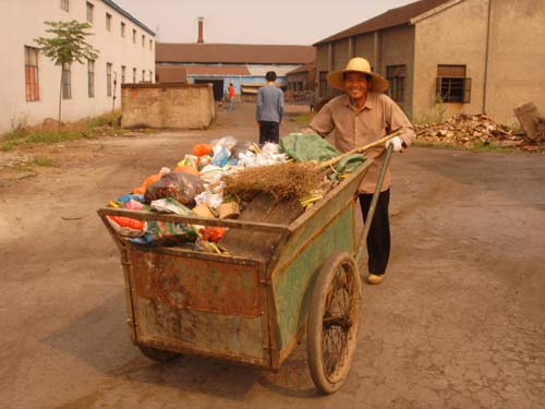 在担任保洁员前,他主要经营9亩多的承包田,平时做做小工。谈到当初之所以选择做保洁员,他说,做小工也很累,而且偶尔还会遇到克扣工资的老板,而做保洁员,工资能够保证。在他担任保洁员的这七年时间里,有许多保洁员因为太累、太苦或者家庭原因离开了,仅他一个人坚持到现在。期间也有企业想聘请他,工资待遇也和保洁员的工资差不多,他也有过动摇,但是村分管卫生的干部上门劝说,让他更加坚定了为厍浜村服务的决心。